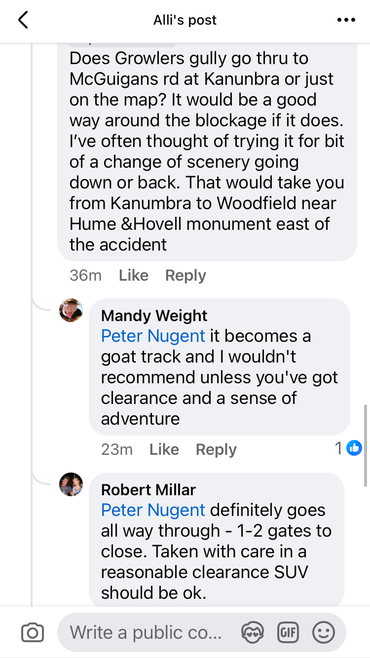 Hi, sorry about the late notice. I'm cancelling for tomorrow. I went up today with the Mansfield Alpine club. It was a very good day, but there was an accident on the Maroondah somewhere near Merton I think and they closed the highway so I had to come home via Benalla and I'm not keen on an early start tomorrow. The snow near Mt Skene could be icy tomorrow morning as there was melting snow on the track. Have fun everyone.