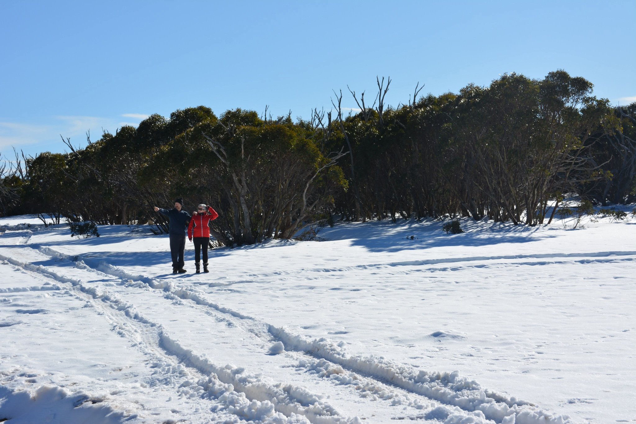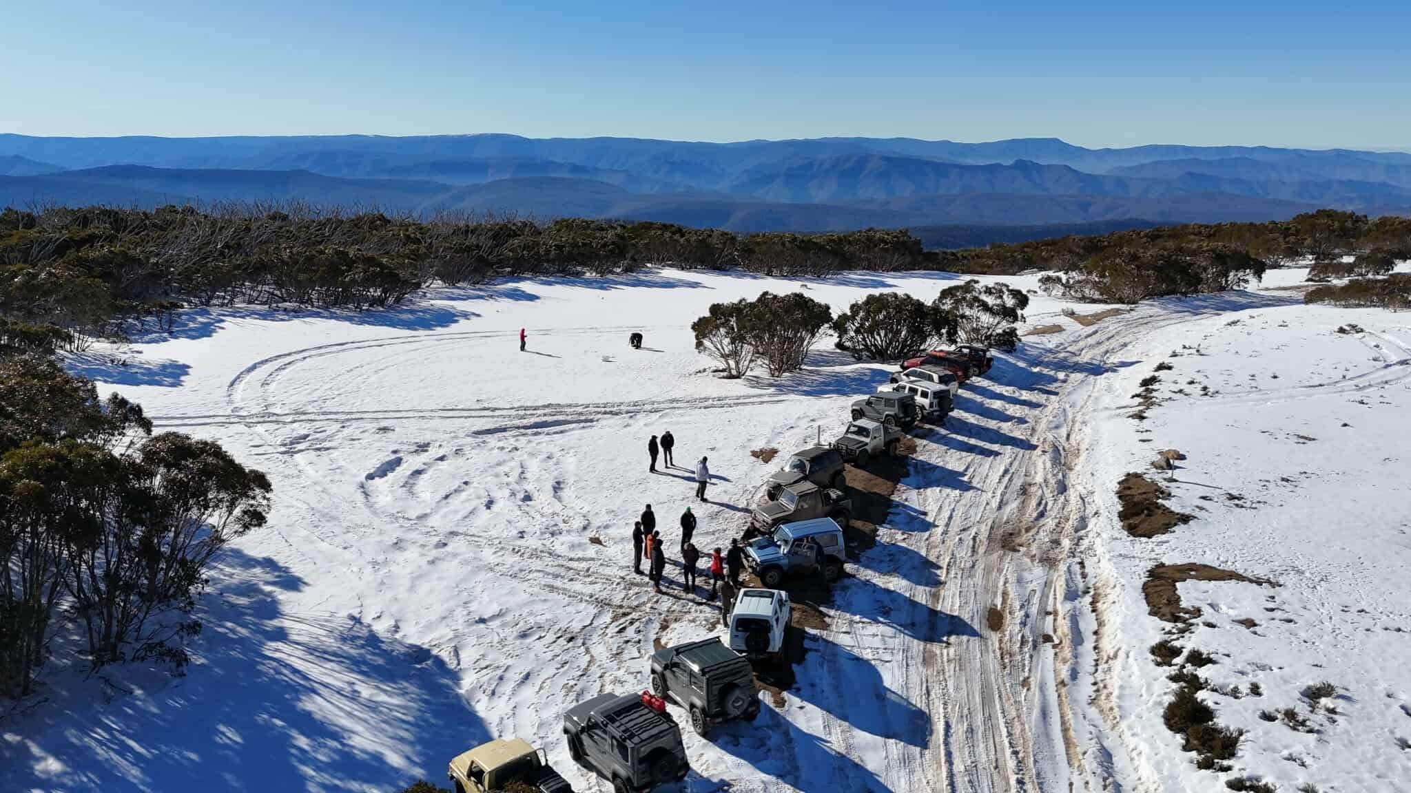 On Saturday, we packed up and headed off from the hut to the summit of Mt Skene, the Mt Skene road is a 2WD road in summer but due to the high altitude (1570m) it often sees more than 1m of snow for a few km near the top, some years we have snow for tens of km in either direction, but unfortunately this year it wasn't to be and we only had minimal and very icy snow. We arrived at the summit around 10am and met the attendees of our other club trip (day trip) only a few minutes later in an act of precision planning (luck). We did some tobogganing and threw snow at each other before deciding that driving some tracks would be more interesting.