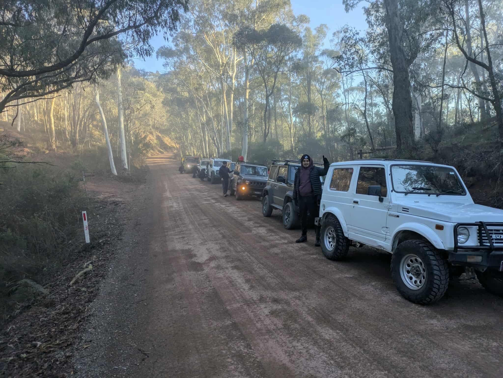 We set off down Lazarini spur track towards the Goulburn river, opting to hear towards Webber spur for an easier and shallower crossing than we had done in the past. We very cautiously proceeded down the slippery and steep track to the river and all made it without any issues (some of the vehicles were stock and on road tyres). We had lunch and a few of us decided to drive a short, difficult section of track, nearby with others walking up to watch us which was good fun, and then headed off to the Woods Point road. We aired up and convoyed back into Jamieson.