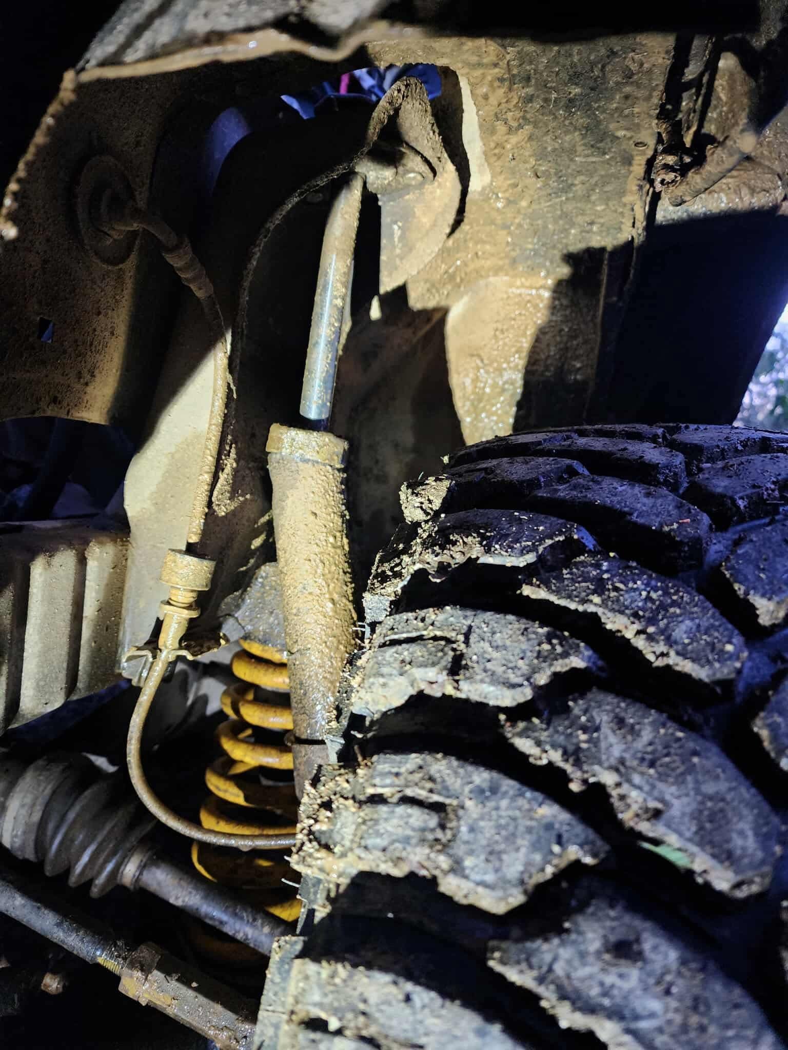 After a little more driving and some other short winch pulls for a few cars on a few sections, Owen heard something go bang and presumed it was his other CV, so we had lunch while Owen replaced the other CV trackside. Unfortunately this didn't seem to fix the problem (despite us then replacing the FWH and some other items) so we suspected the auto locker had broken inside the diff and wasnt going to be fixed in the bush. With Owen down to 3 wheel drive, this track was looking a lot more difficult, after a few long winch pulls, we then hooked Owen up to my car and towed and winched him out of the track. With the day getting on, we decided to head back to the hut before it got dark, and settle in for another night. Owen also broke a strut at some point on the way back which he replaced that evening.