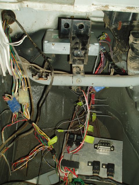 I wired in a new check engine light to sit next to the computer, and tried again - and we got a flash code on the light. Checking the FSM, it confirmed that the code we had was for "no trouble" - Ooookaaaay then.. BUT - we shouldn't have had a flash code at all. This meant that the diagnostic link was grounded ( the diag. link is like the scan tool the dealers use but more crude - it makes the check engine light flash a code that tells you what's wrong. I fitted one to a carby car once, but the code flashed just said "running like crap"